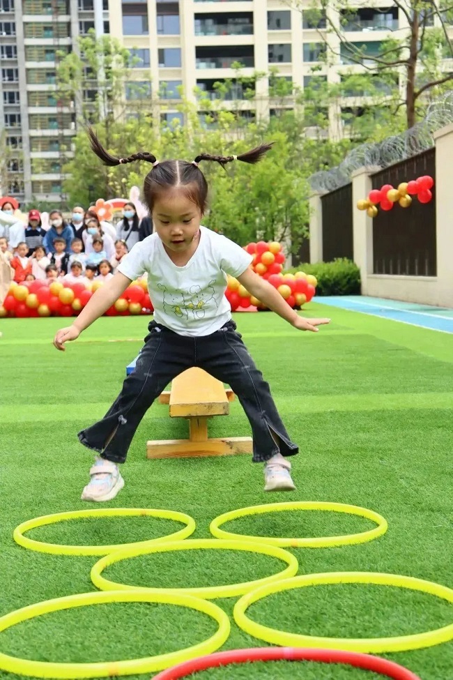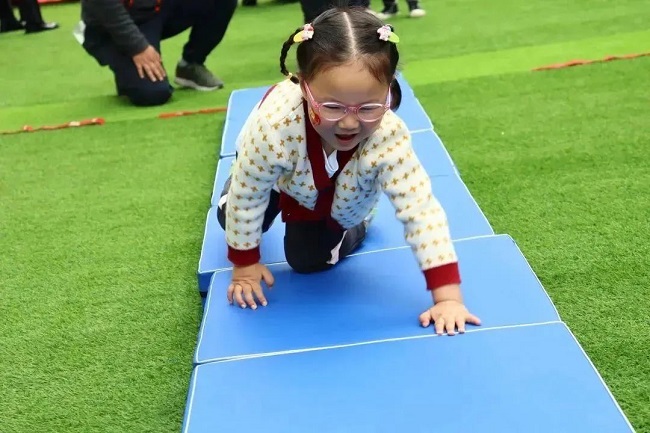 活动对走、爬、跳等基本动作进行了巩固,提升幼儿身体平衡能力。