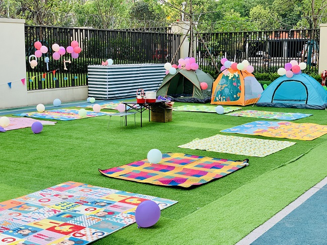 我们和爸爸妈妈一起合作,一会就把露营场地装饰的美美的,人多真是力量大啊!