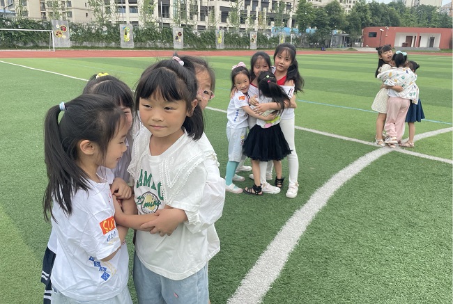 户外体育课时间,体育老师带领着孩子们玩了好玩儿的游戏,感受着小学操场的广阔。