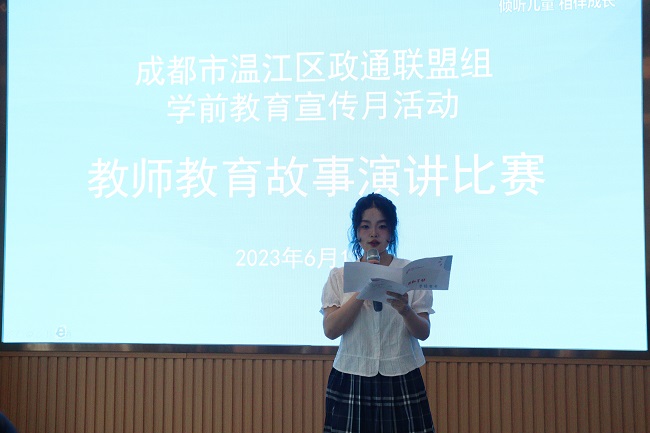 为贯彻2023年全国学前教育宣传月主题“倾听儿童,相伴成长”,分享在日常保教工作中教师倾听理解幼儿、有效支持幼儿学习发展等方面的典型经验,形成共同观察了解、解读幼儿,支持幼儿发展,相伴成长的良好氛围,温江区政通联盟组成员园齐聚温江区实验幼儿园祥和分园,开展教师教育故事大赛。