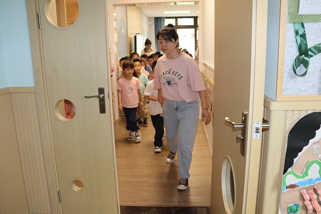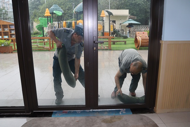 与此同时,各小组人员按照分工要求,有序开展应急处置工作。抗汛组在幼儿园一楼楼道口、教室门口、厨房门口等可能出现积水灌入的点位垒砌沙袋,堵住入水口。后勤人员关闭电闸,应急救护小组人员就位,随时准备对疏散过程中的受伤人员进行急救处理和其他人员进行心理疏导。